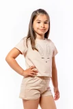 Літні повсякденні комплекти для дівчаток зазвичай складаються з шортів та футболки. Однак їх фасон значно відрізняється. Футболки можуть бути з довгими, середніми рукавами або топи, а шорти як короткими, так і подовженими. Серед такого асортименту повсякденних комплектів, можна обрати декілька різних як за кольором, так і за фасоном, аби урізноманітнити дитячий гардероб.