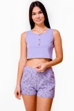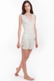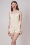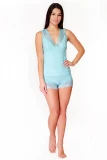 Рекомендуємо обирати комплекти, які складаються з шортів та топу, футболки чи майки. Важливо, щоб вони були виготовлені з натуральних тканин, які пропускатимуть повітря. В якості декору може використовуватися мереживо, бантик з атласної стрічки і т. д. Вони не будуть заважити під час сну навіть чутливим жінкам.